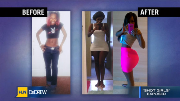 Left before the implant. Right After the Butt Injections. |